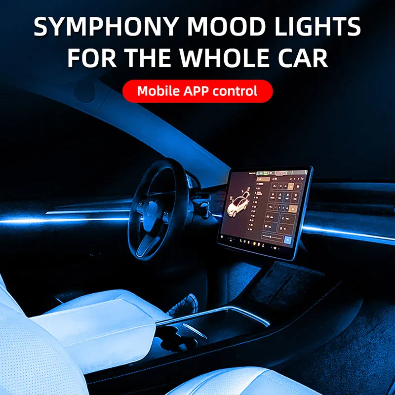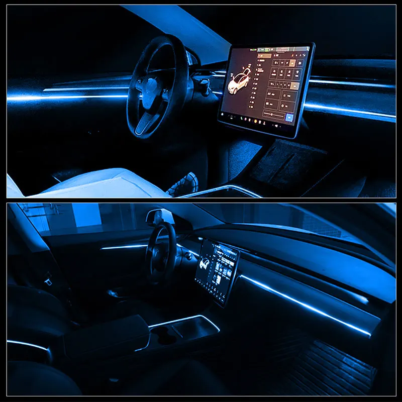 For Tesla Model 3 Y Ambient Lights Neon Lighting LED Strip Center Console Dashboard Foot APP Control Car Interior LED Strip Lamp