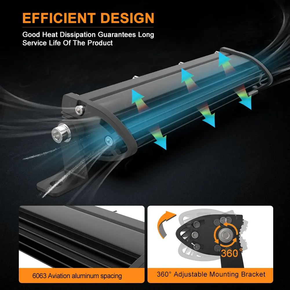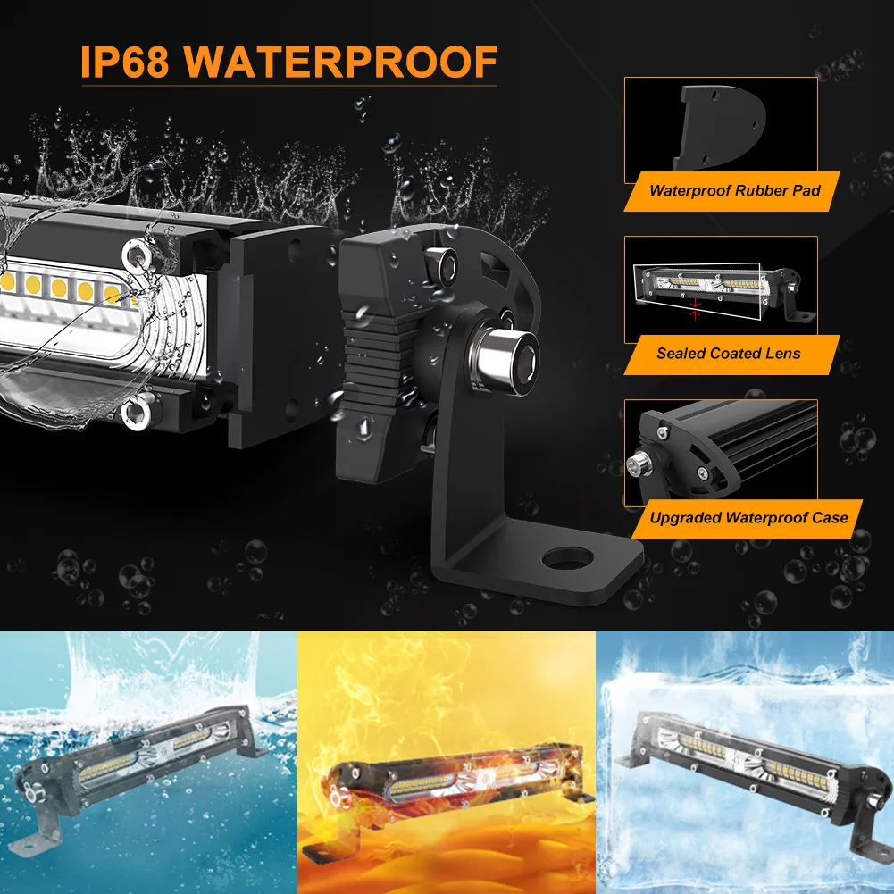 Boîtier en aluminium 6063 étanche IP68 et résistant, cette barre lumineuse LED offre d’excellentes performances d’étanchéité, antirouille, anti-poussière et anti-tremblement.