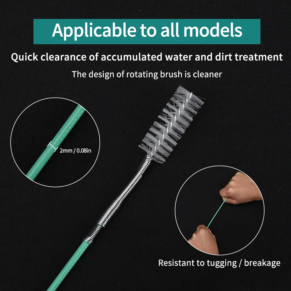 - La brosse flexible est idéale pour le nettoyage des drains de voiture, des trous de vidange de voiture, des livres de toit ouvrant, des accessoires d’outils et des tuyaux de vidange de lucarne.