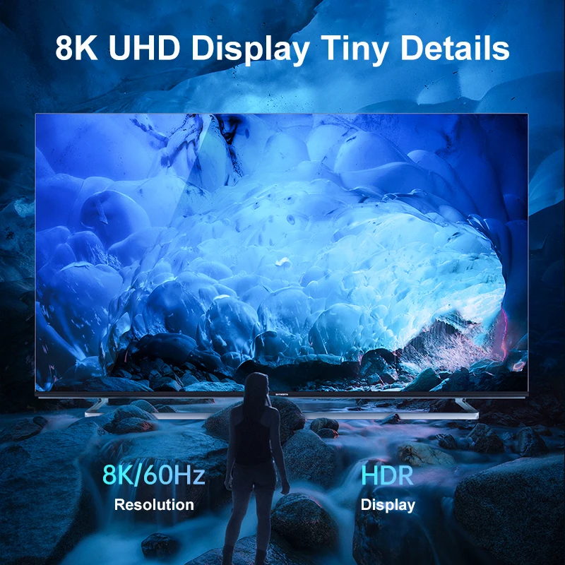 Ce câble propose des caractéristiques avancées, notamment une résolution maximale de 8K avec un taux de rafraîchissement de 60Hz et une résolution 4K avec un taux de rafraîchissement de 120Hz. Il prend en charge les formats audio LPCM, PCM, DTS, DSD, Dolby AC/2.0/5.1/7.1 et offre une vitesse de transmission de 48 Gbps.
