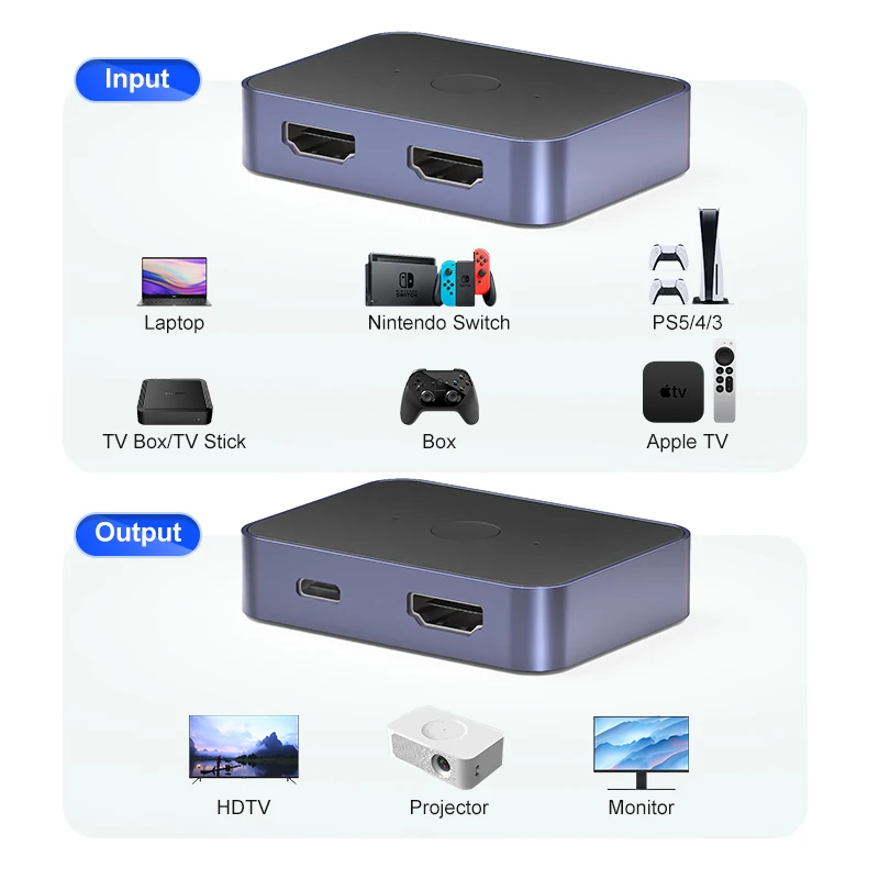 Test et avis sur le Mathiateur HDMI 1080 8K 60Hz 4K 120Hz 2 en 1 sortie pour TV Xiaomi Xbox SeriesX PS5, câble HDMI moniteur 2.1 P 1 entrée 2 sorties