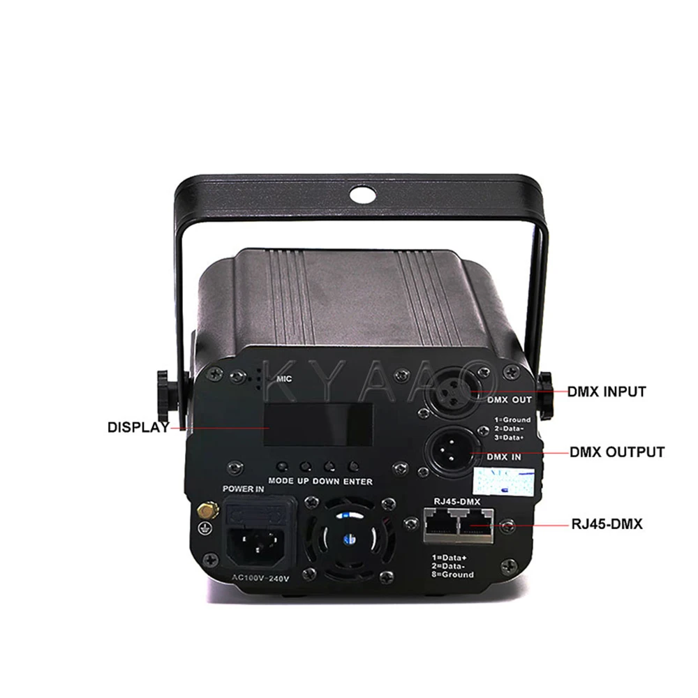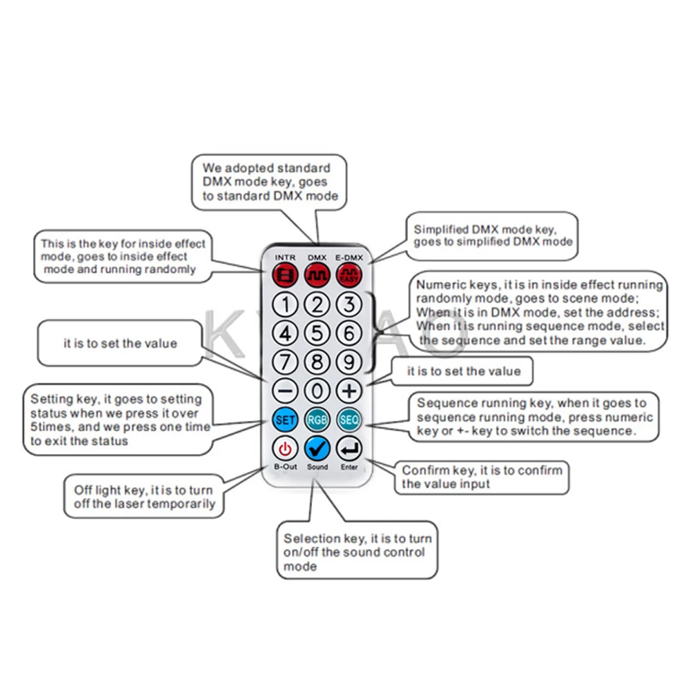| Plusieurs modes de contrôle : télécommande, DMX512, app, son et auto | RGB 2200mW | 34CHS | Galvanomètre 15-20kpps | 2.5KG |