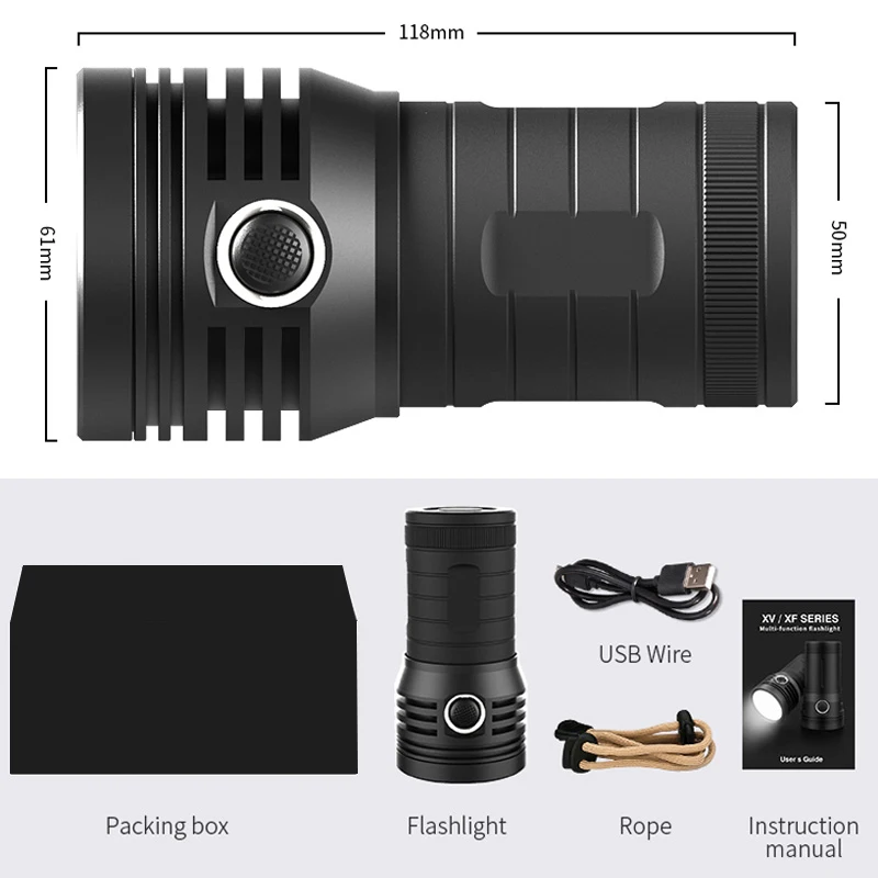 - Contenu de l’emballage: lampe de poche, corde, câble USB de 0,5 m