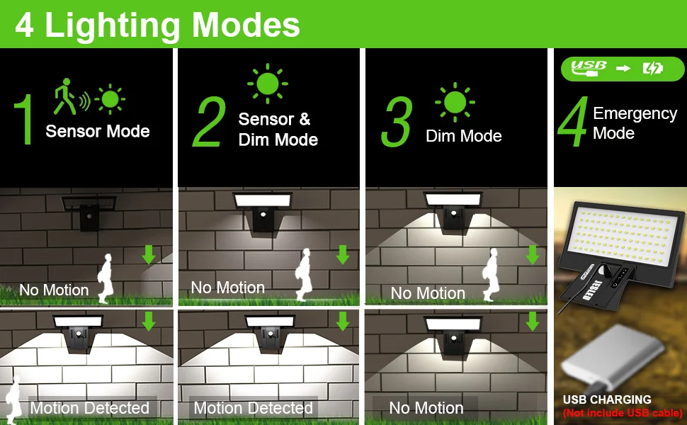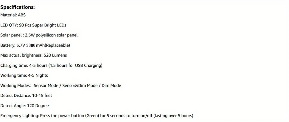 - Le capteur de mouvement PIR détecte les mouvements jusqu’à 30 pieds et offre 4 modes d’éclairage pour répondre à vos besoins spécifiques.