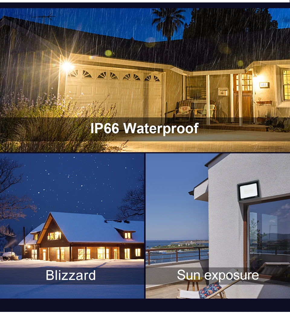 Ce projecteur intelligent LED est conçu pour résister aux conditions extérieures. Il est étanche avec une protection IP66, ce qui signifie qu’il peut résister à la pluie, au gel et à la chaleur intense. Vous n’avez donc pas à vous soucier de son fonctionnement dans des conditions difficiles.