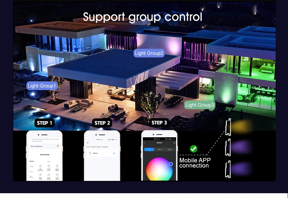 Une autre option de contrôle pour ce projecteur est l’application Tuya. Vous pouvez créer des groupes de projecteurs pour un contrôle synchronisé et partager l’accès à l’application avec votre famille. Cela vous permet de changer les couleurs et les réglages facilement et à tout moment.