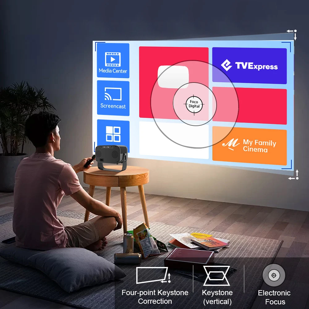 Le mini projecteur vidéo intelligent N1 P28A est équipé de la technologie d’affichage LCD 2.69″ et d’une source de lumière LED, ce qui offre une luminosité de 150 lumens et une résolution de 1280*720. Avec un contraste de 2000:1, il offre des images de haute définition sur une taille de projection allant jusqu’à 120 pouces. Il est également équipé d’un haut-parleur indépendant de 3W et prend en charge le WiFi et le Bluetooth.
