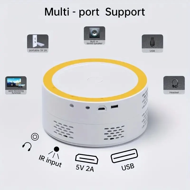 Le projecteur LED Mini Beamer Home Cinéma est un projecteur portable de haute luminosité qui prend en charge les écrans jusqu’à 1080P. Il est parfait pour les présentations et les soirées cinéma. Le projecteur n’est pas compatible Bluetooth, mais dispose d’un haut-parleur intégré pour une commodité accrue. Il est léger et portable, idéal pour les déplacements. Avec une résolution optique de 320*240, ce projecteur offre des images claires et nettes.