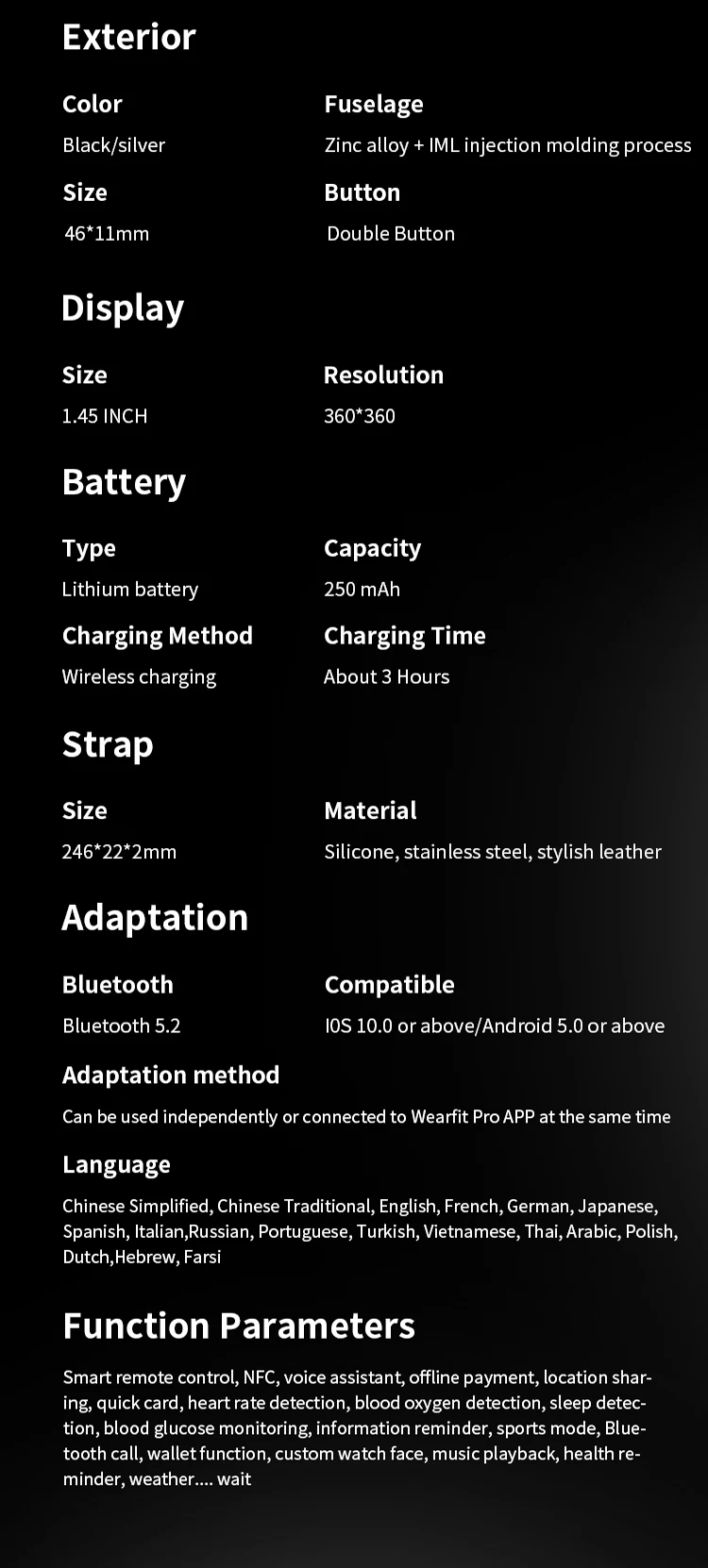 Affichage de l’écran: écran rond de 1.45 pouces, résolution 360*360