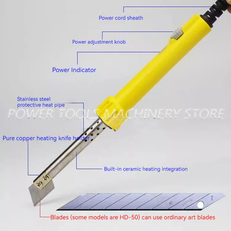 La machine de découpe de mousse thermique électrique, outils à main en polystyrène, couteau de coupe thermique est principalement utilisée pour couper des matériaux en mousse à faible densité et des tissus en fibres chimiques et autres matériaux à faible point de fusion tels que la mousse (EPS), le coton perlé (EPE), l’éponge (PU), le panneau d’isolation thermique (XPS) KT, le tissu non tissé, le papier peint, le tissu en fibre chimique, la corde en nylon, etc. Après la coupe, la fracture est lisse, sans bords lâches ni bavures, ce qui permet d’obtenir des résultats de coupe précis.