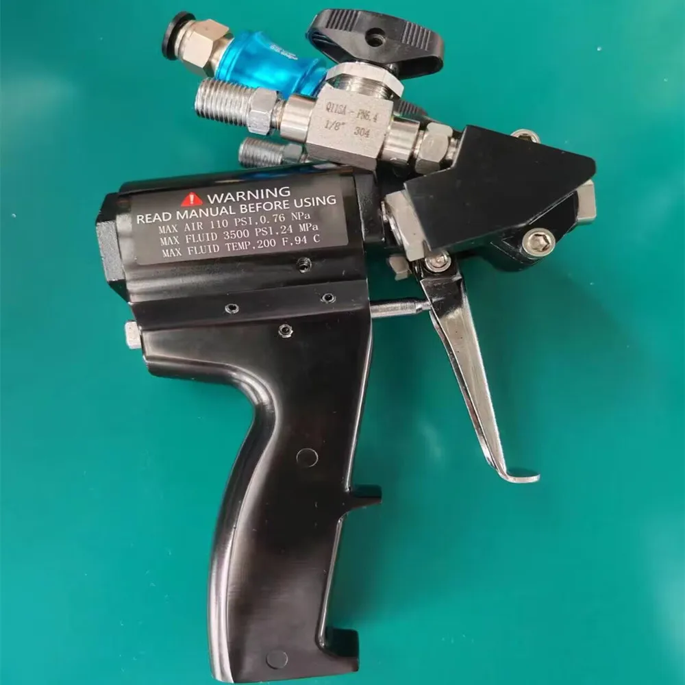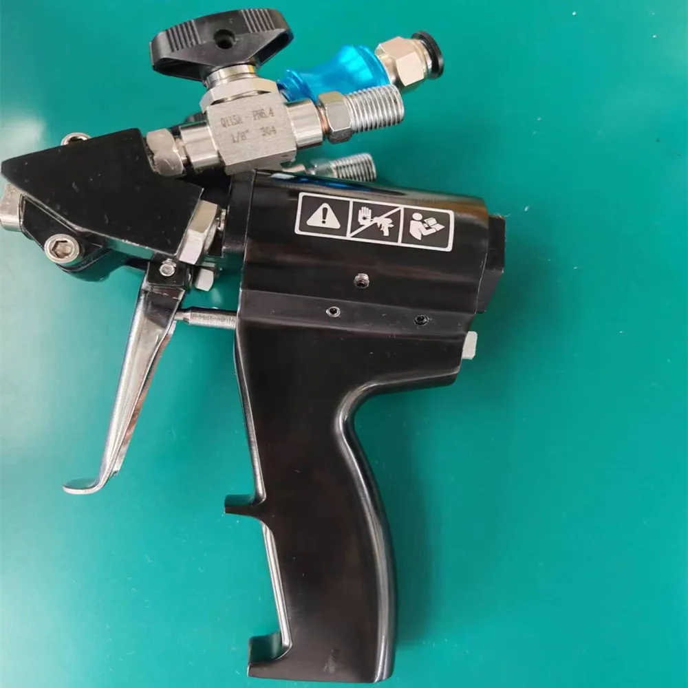 La conception de la poignée ergonomique offre confort et facilité d’utilisation. Ce pistolet polyvr offre une réponse rapide de déclenchement grâce à un double piston, offrant ainsi une force motrice puissante. De plus, sa conception anti-croisement élimine pratiquement toute possibilité de fuite de matériau dans le piston à air.