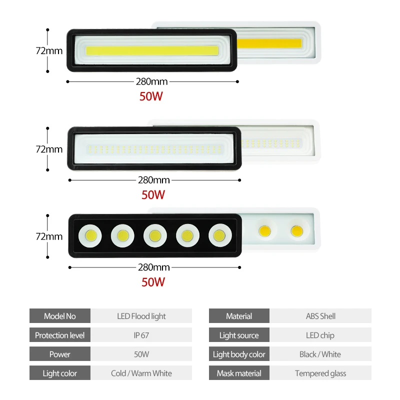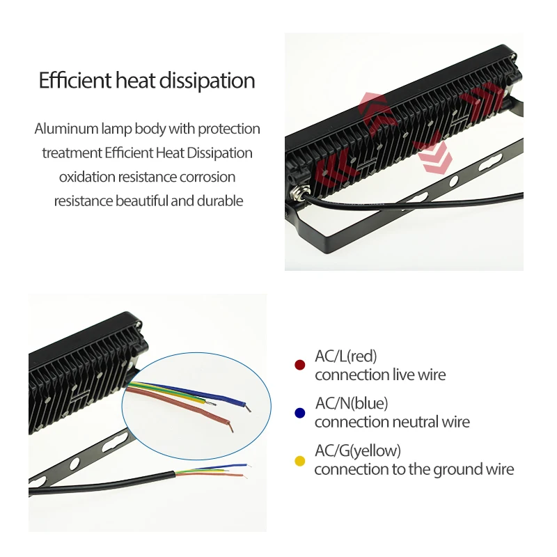 La conception mince du projecteur favorise la dissipation de chaleur et réduit les risques de sécurité. Le matériau en aluminium garantit une construction solide et durable. Avec un angle de faisceau de 180 degrés, il offre une couverture étendue.