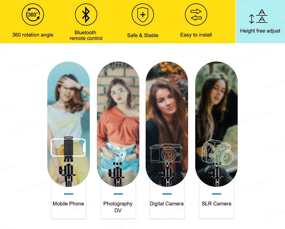 1, l’interface du trépied selfie est une interface universelle 1/4;