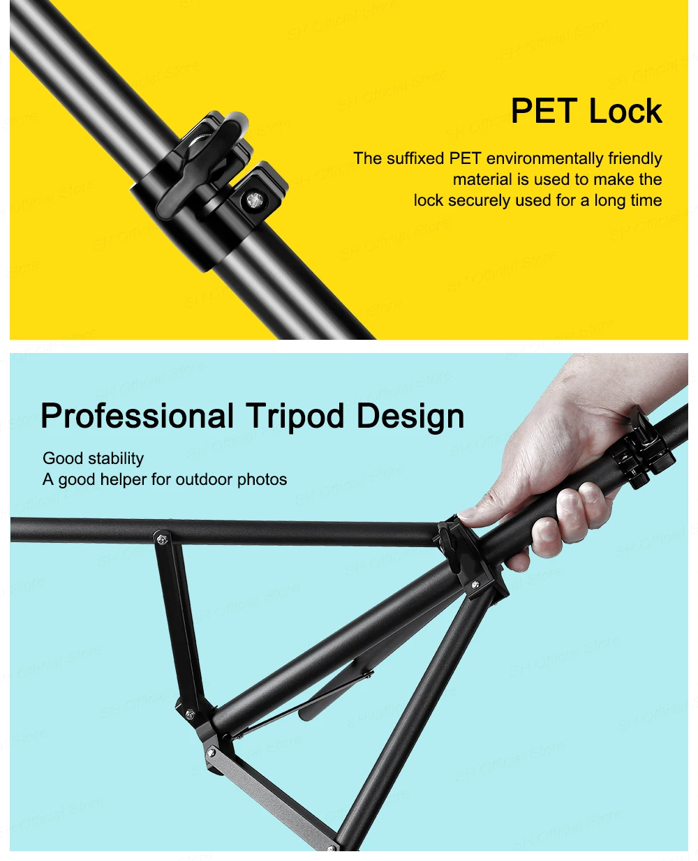 3, Le matériau du support de lampe est en alliage d’aluminium, et la version améliorée supporte plus de poids;