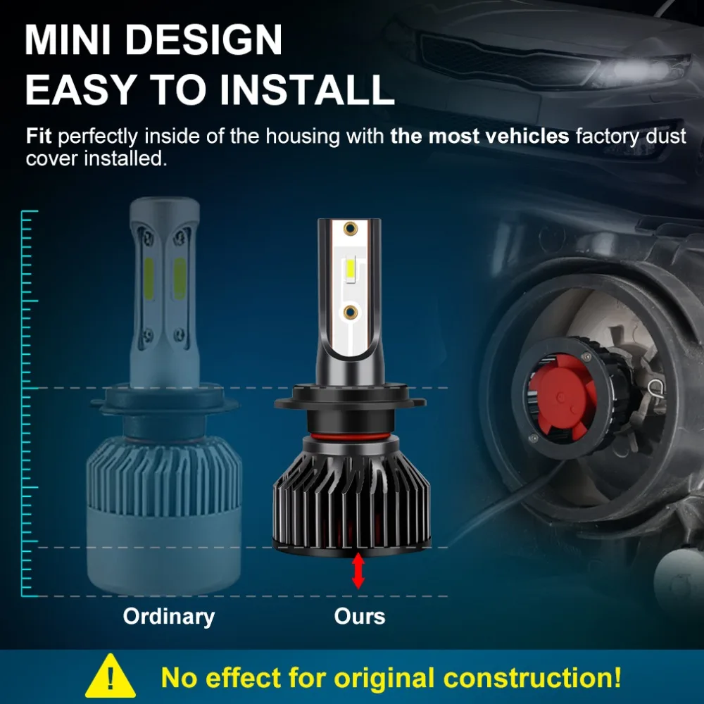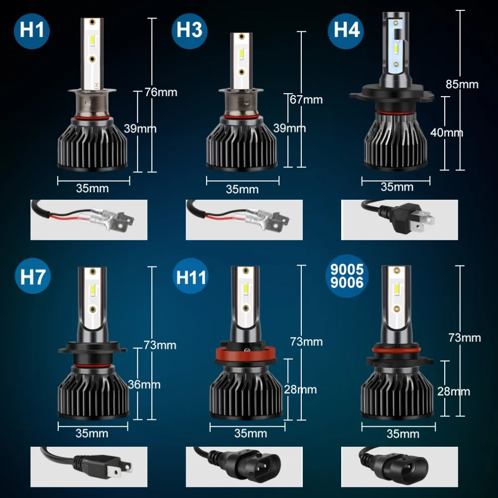 Type d’ampouleLED H4 H7, H1 H3 H8 H11, 9005 HB3 9006 HB4